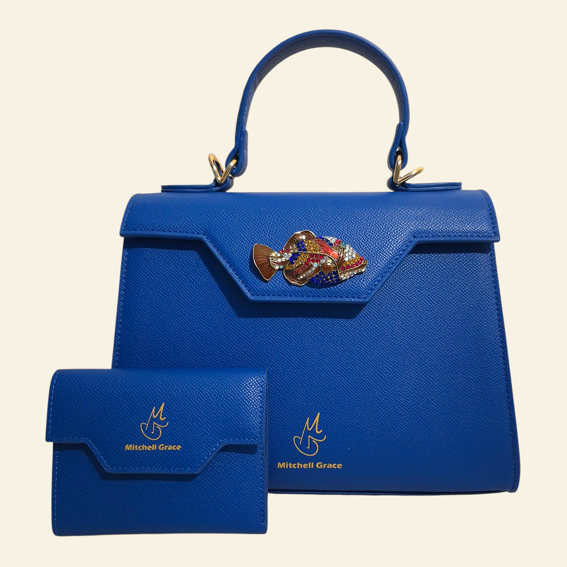 Finished with the Mitchell Grace gold logo in front for a polished, luxury touch.